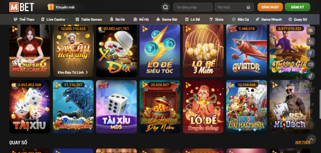 Không chỉ nổi bật trong mùa World Cup, MBET còn là nhà cái trực tuyến uy tín với kho trò chơi và kèo cược đa dạng: